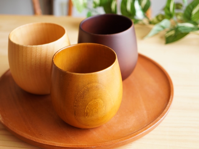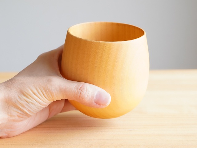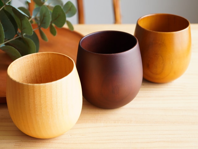 木の湯のみは保温性が特徴。熱いお茶も冷めにくく、氷入りの冷たい飲み物も表面に汗をかきません。