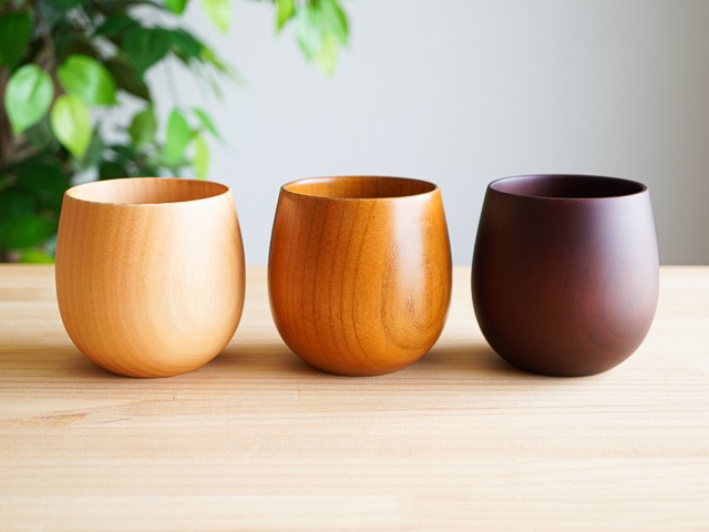 保温・保冷性に優れた木の湯のみはオールシーズン大活躍
