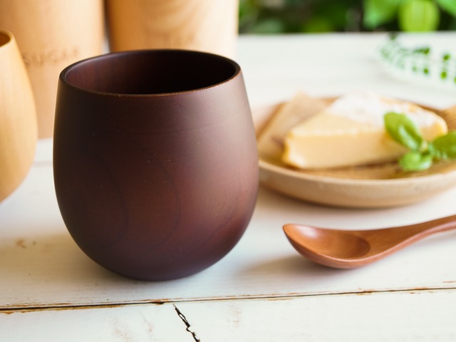 熱いお茶も冷めにくく、氷入りの冷たい飲み物も表面に汗をかきません。素材として使われているナツメの木は水分に強く、お茶やコーヒーを入れても長時間楽しめます。