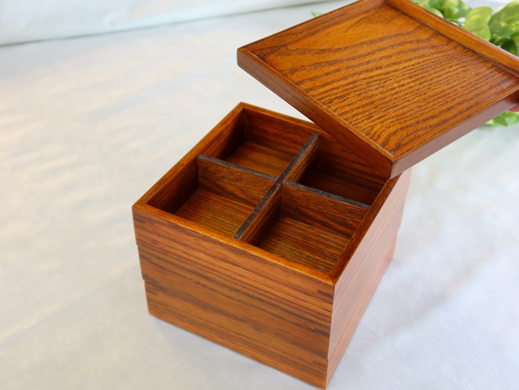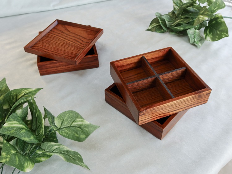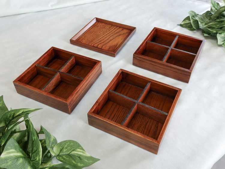 中のしきりは取り外しができるのでおうちの食卓、外で食べるお弁当に、またお料理のおすそわけのときにも。
