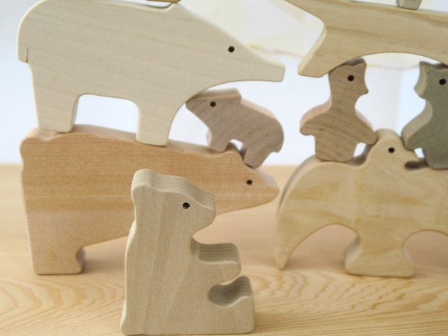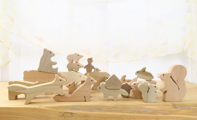 無垢の木を使った、子どもの想像力をかきたてる動物の積み木