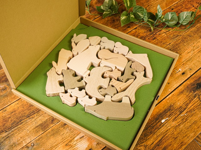 さまざまな角度から子どもたちが親しみやすくなるように、日本の森に住む身近などうぶつをモチーフにした積木です。