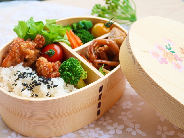 どんなおかずにもよく合うナチュラルな色味の曲げわっぱに、