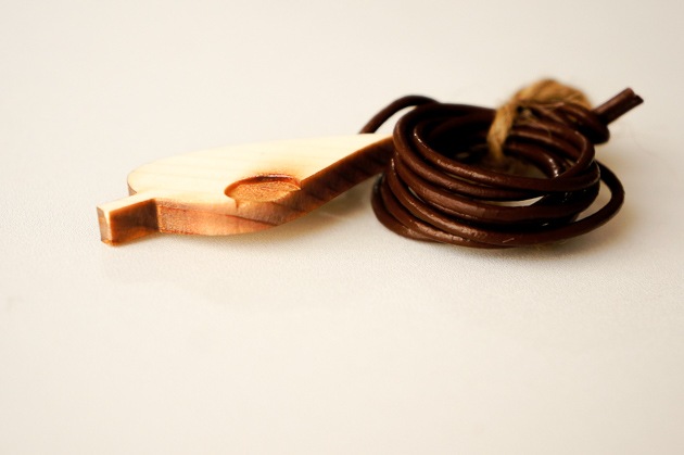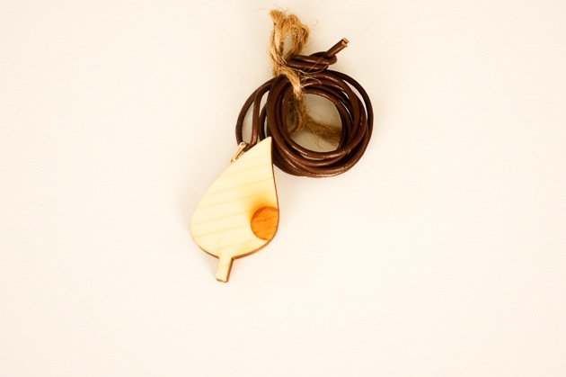 シンプルでやさしい形の葉っぱの表面に、穴の形を彫り込んだ木ならではの優しい風合いが生きるシンプルなネックレス