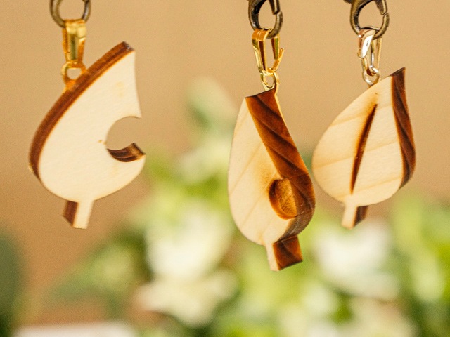 木ならではの優しい風合いが活きた、かわいい葉っぱストラップ