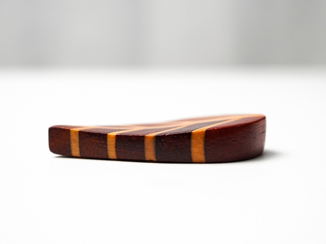 この箸置きは寄木といって種類の違う木を組み合わせる技術が使われています。