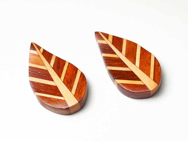 木の葉の形と寄木の濃淡の組み合わせが 小さいながらも存在感があり、食卓が一気に華やかになります。