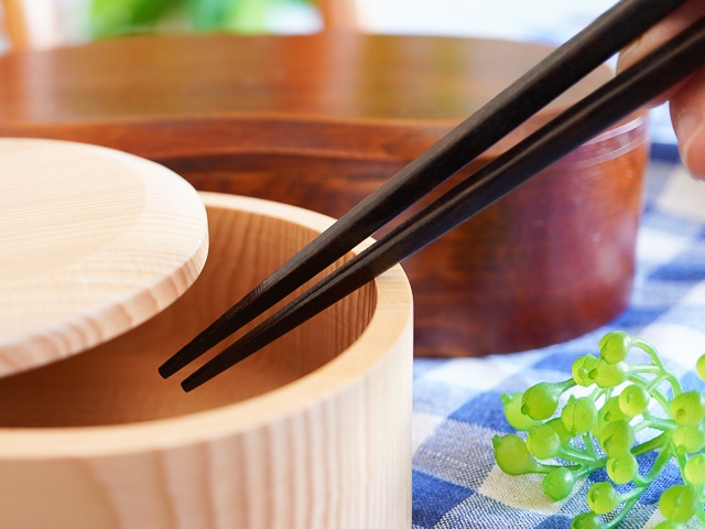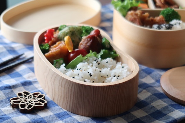 木の素材が呼吸をするため、ごはんの一粒一粒をふっくらもちもちにしてくれる効果があります。このごはんの美味さは木のお弁当ならでは!是非味わってみてください。