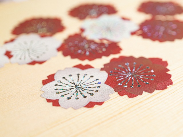 華やかで愛らしい紅白の桜模様が描かれています。