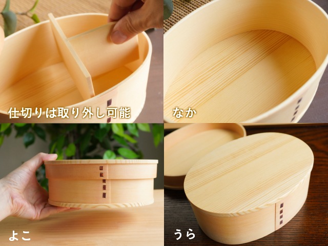 形は、女性にちょうどよい量で、バランスよくおかずを詰めやすい小判形。