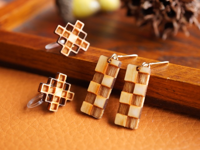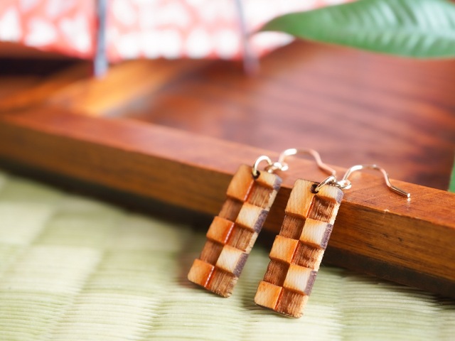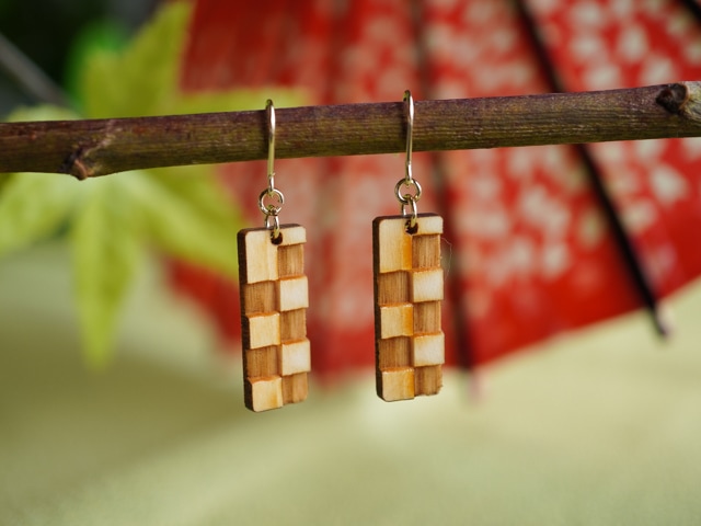 しっとり和の雰囲気 木製イヤーアクセサリー。