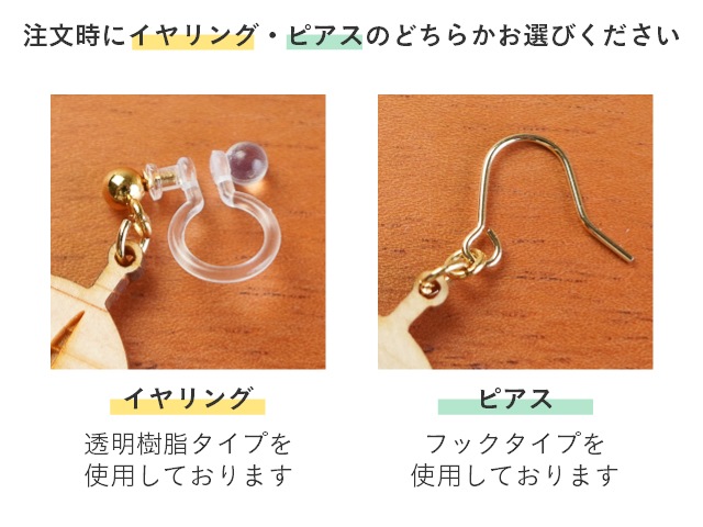 ピアスタイプとイヤリングタイプの2種類から選べます。