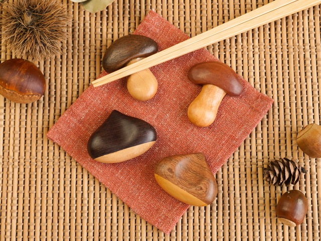 秋の食卓に映える 栗ときのこの箸置き