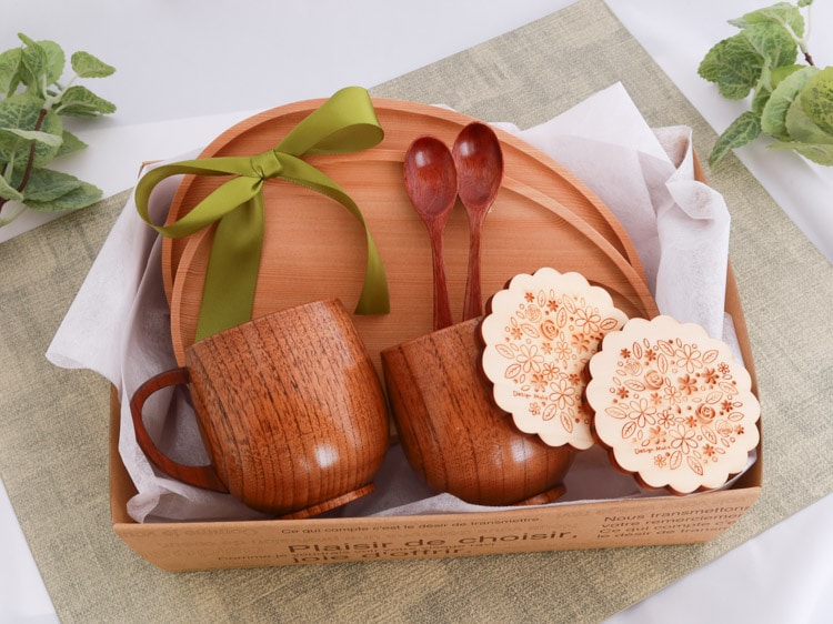 結婚祝いや新築祝いには、新しい門出にそっと寄り添ってくれる、温かい雰囲気の木の器のギフトセットをいかがでしょうか。