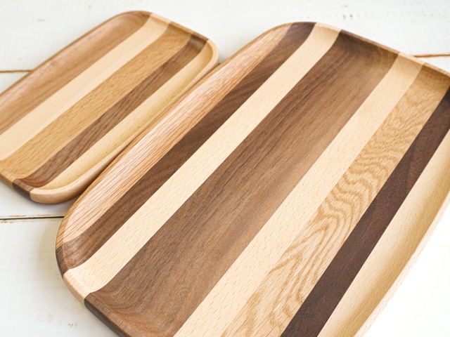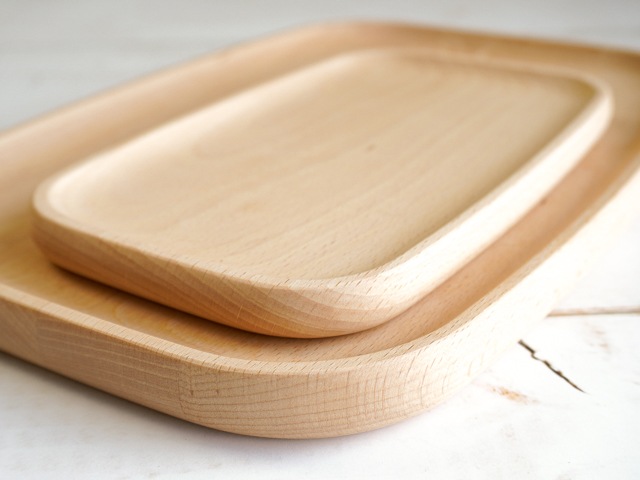 角がまあるく、優しい印象の木のトレイ。 継ぎ目がなく、くりぬいたようにつくられているのでお手入れもラクチン。
