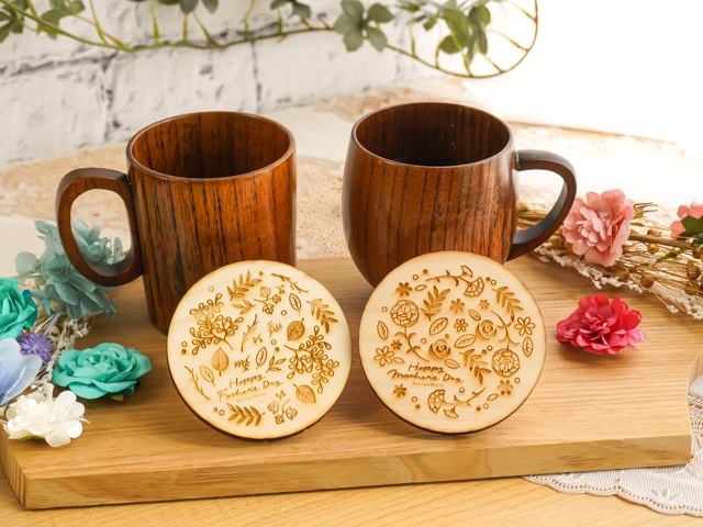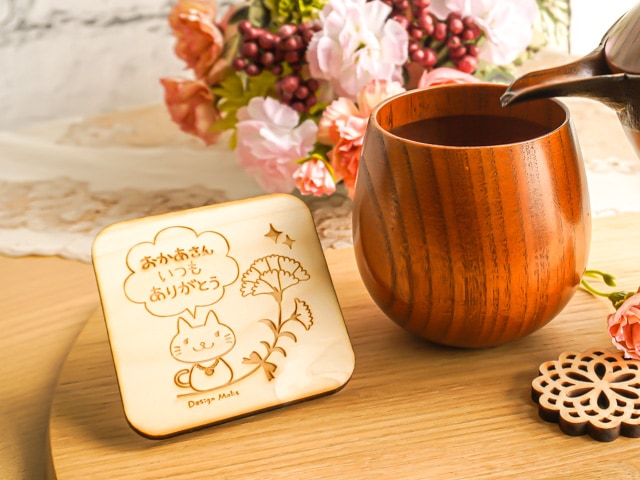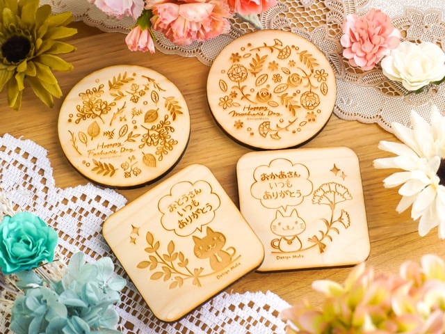 母の日、父の日に感謝を贈る、かわいい木のコースター。