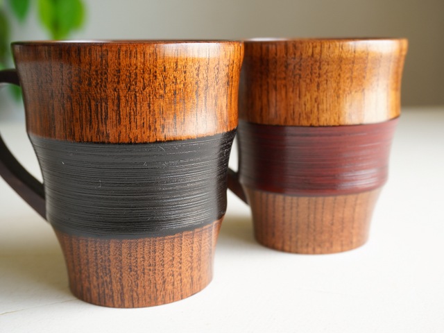 漆塗りの段付きマグカップ