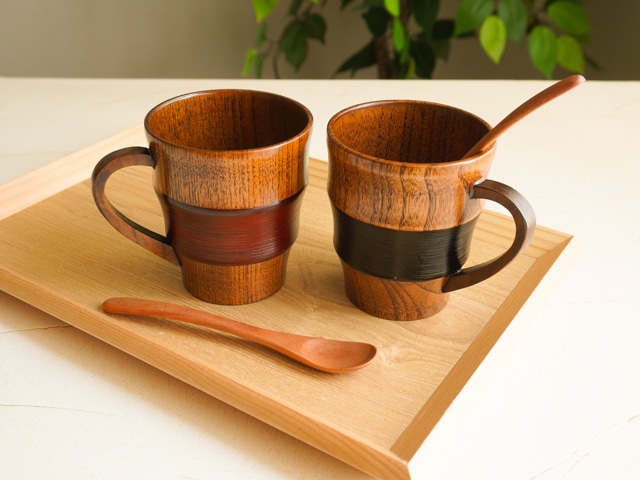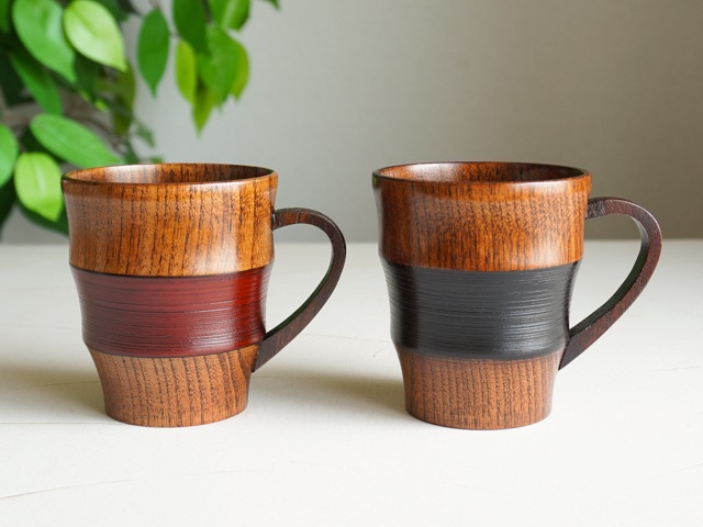 漆のツヤが美しいこちらのマグカップは、木の材質により保温性・保冷性が高く、季節を問わずご使用いただけます。