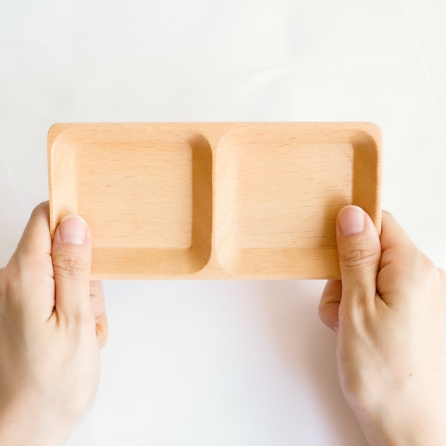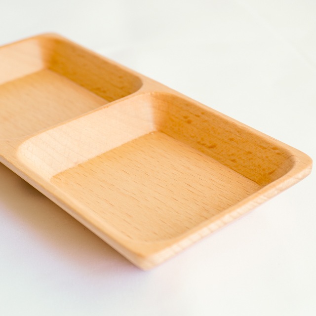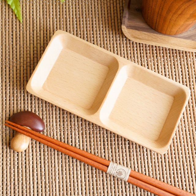 毎日使いたいシンプルな木の2つ仕切りの角皿。