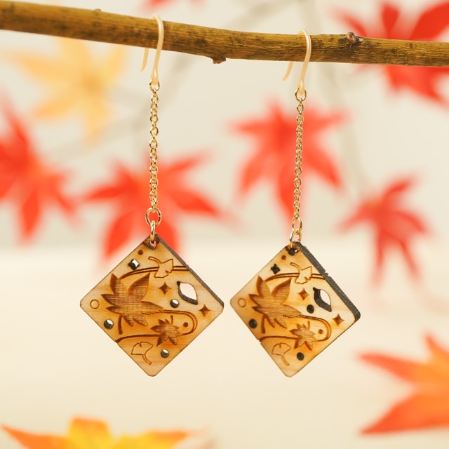 【両面彫刻】ゆらりイヤリング・ピアス 秋風