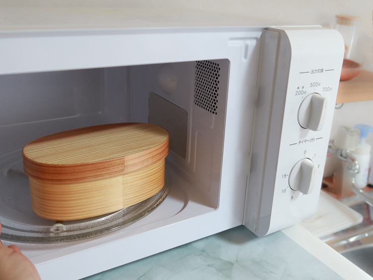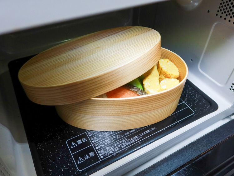 ご飯がおいしく食べられる曲げわっぱの弁当箱。電子レンジや食洗器には対応していないものがほとんどでしたが、加工や仕上げの改良を重ねることで電子レンジや食器洗浄機にも入れられる曲げわっぱ弁当箱ができました。 -