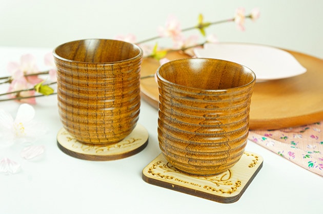 ゆのみとコースターが2つずつセットになった ラッピングつきペアギフト。
