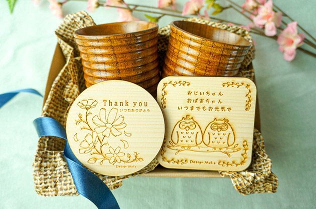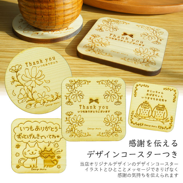 【和ギフト】シニア世代の贈り物にも ゆのみ・メッセージ入りコースター4点セット